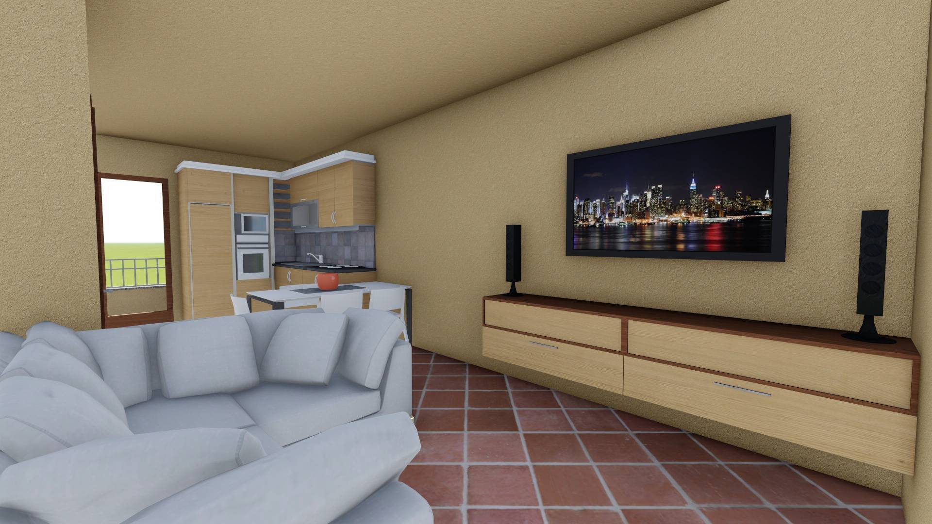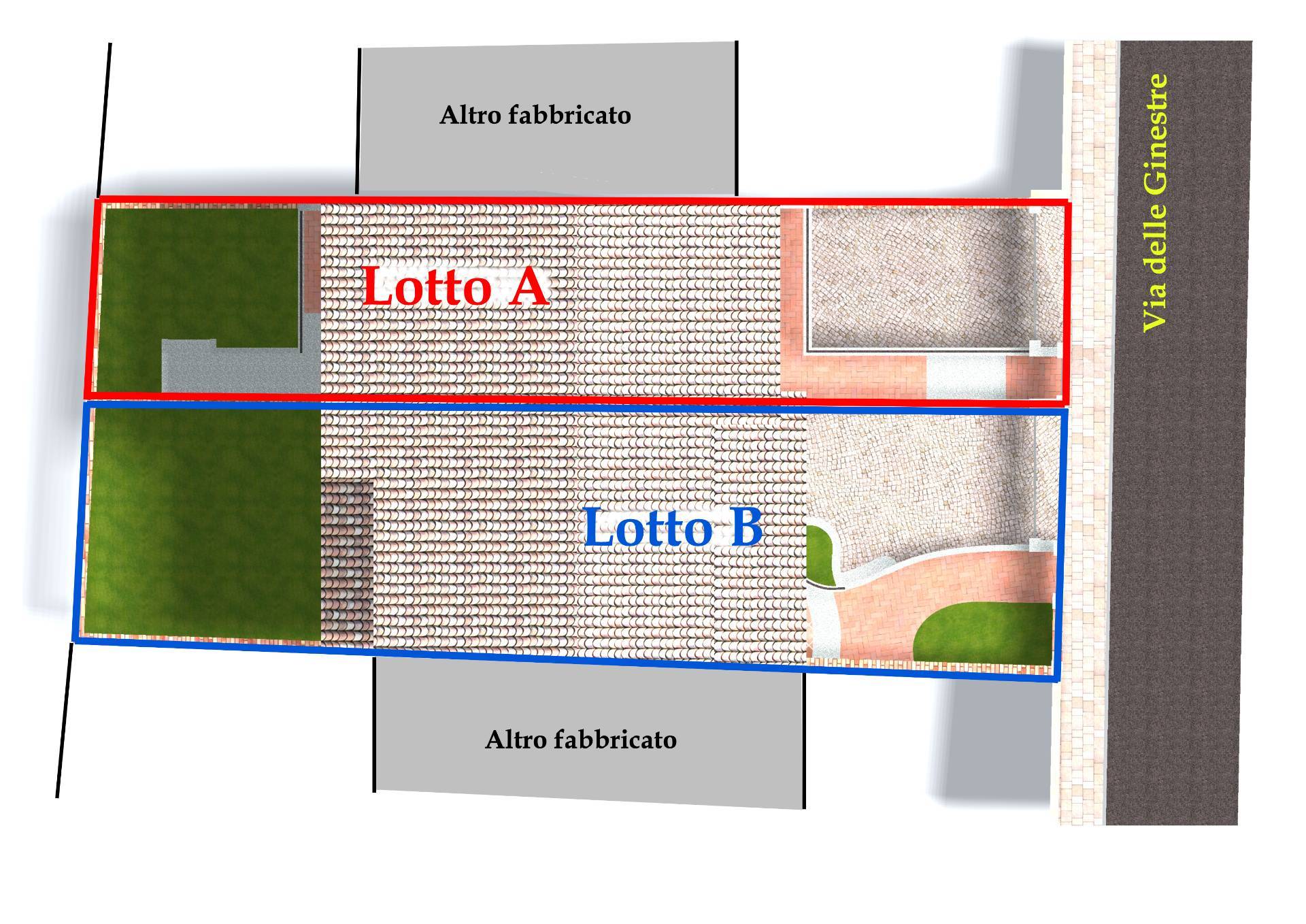 - Al piano terra dotato di accesso sia dal cancello pedonale in via delle Ginestre che dalla scala esterna sul retro, troviamo un pranzo soggiorno con affaccio sulla veranda, un bagno finestrato con doccia e un ripostiglio;