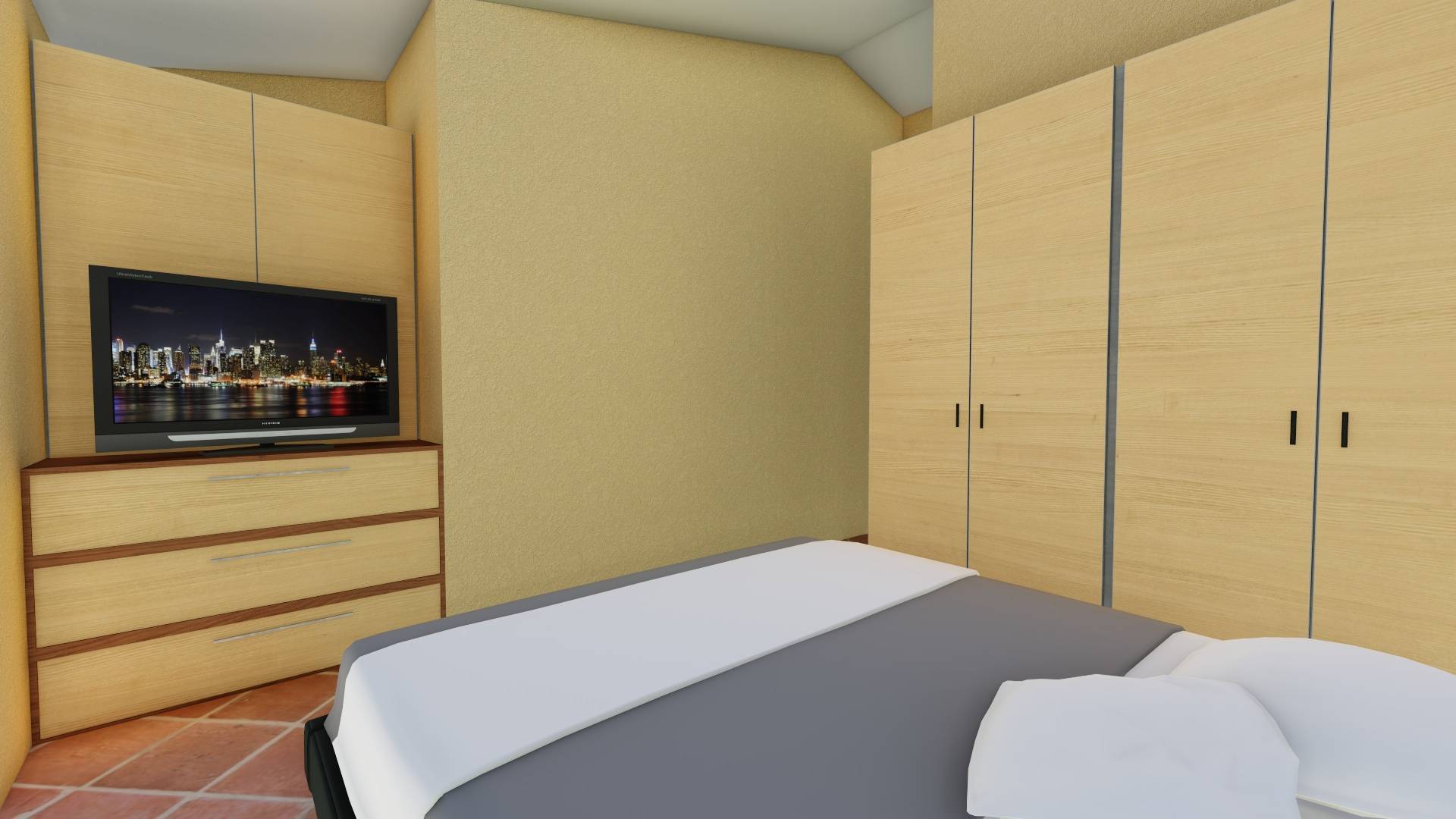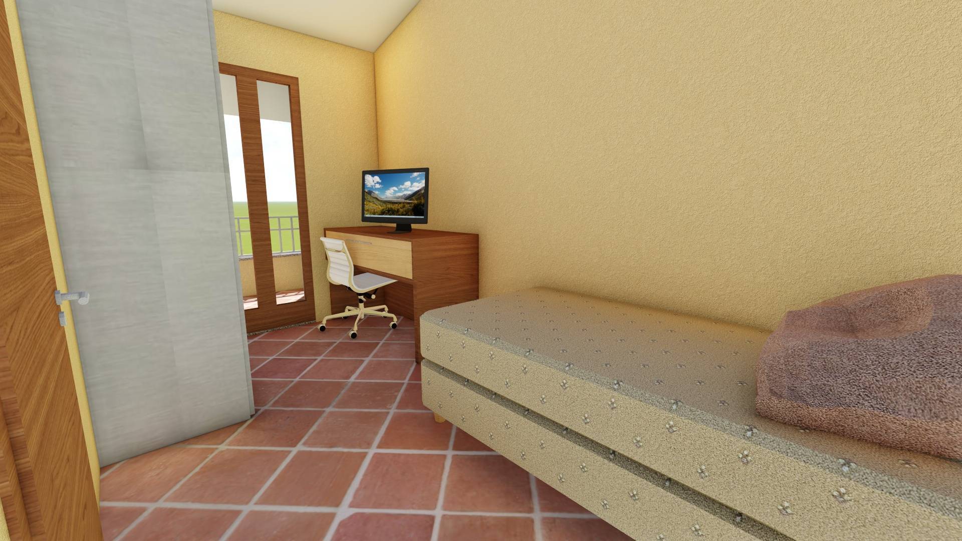 - Al piano primo abbiamo una camera da letto matrimoniale, una camera da letto singola con affaccio sulla veranda e un bagno finestrato con doccia.
