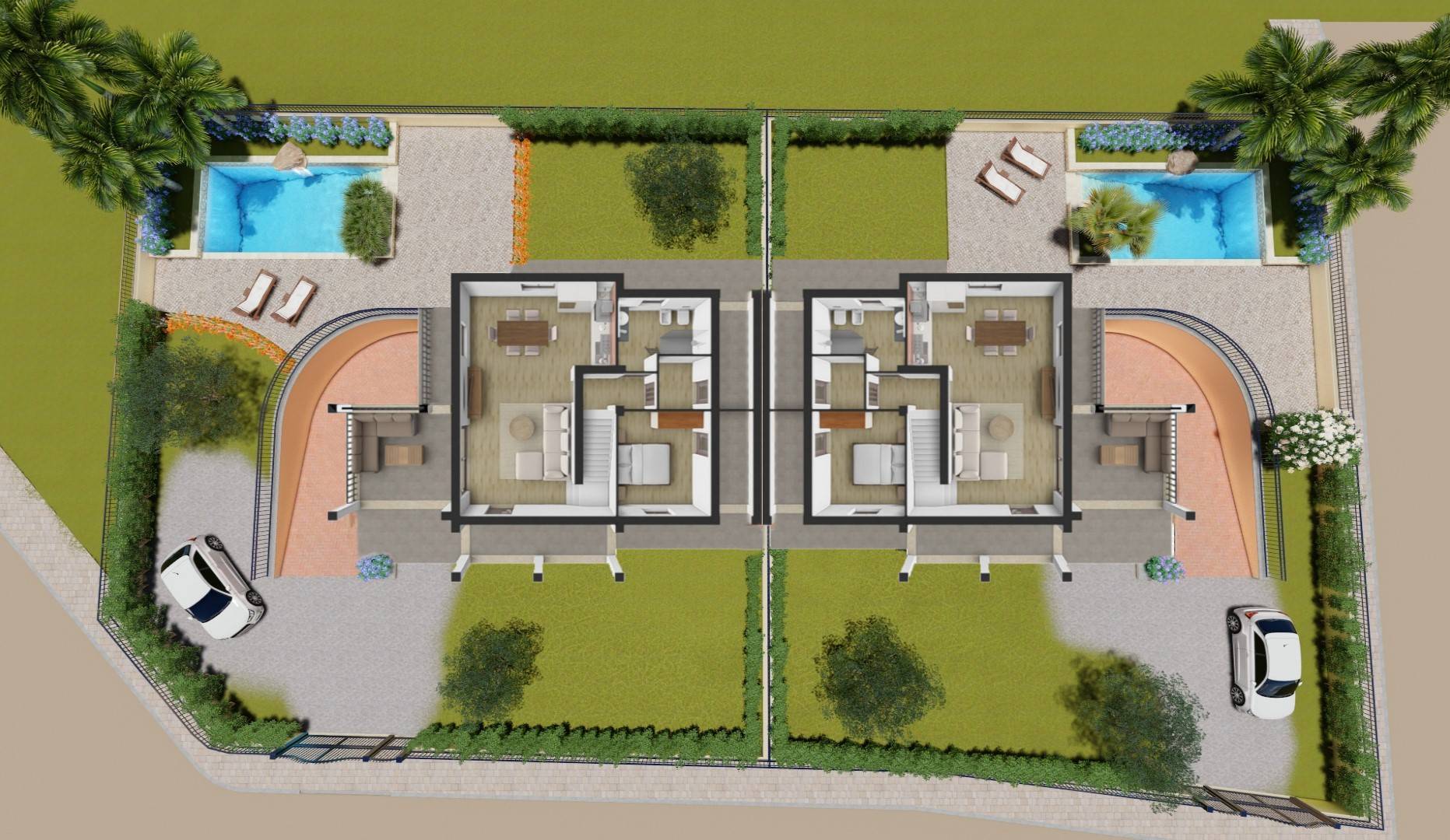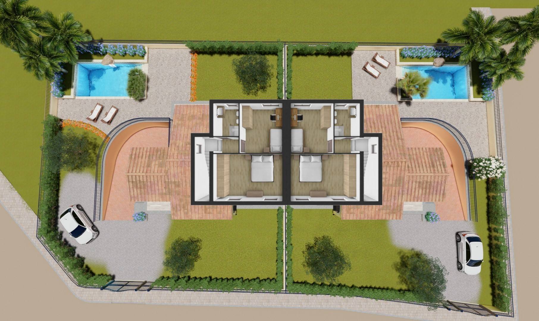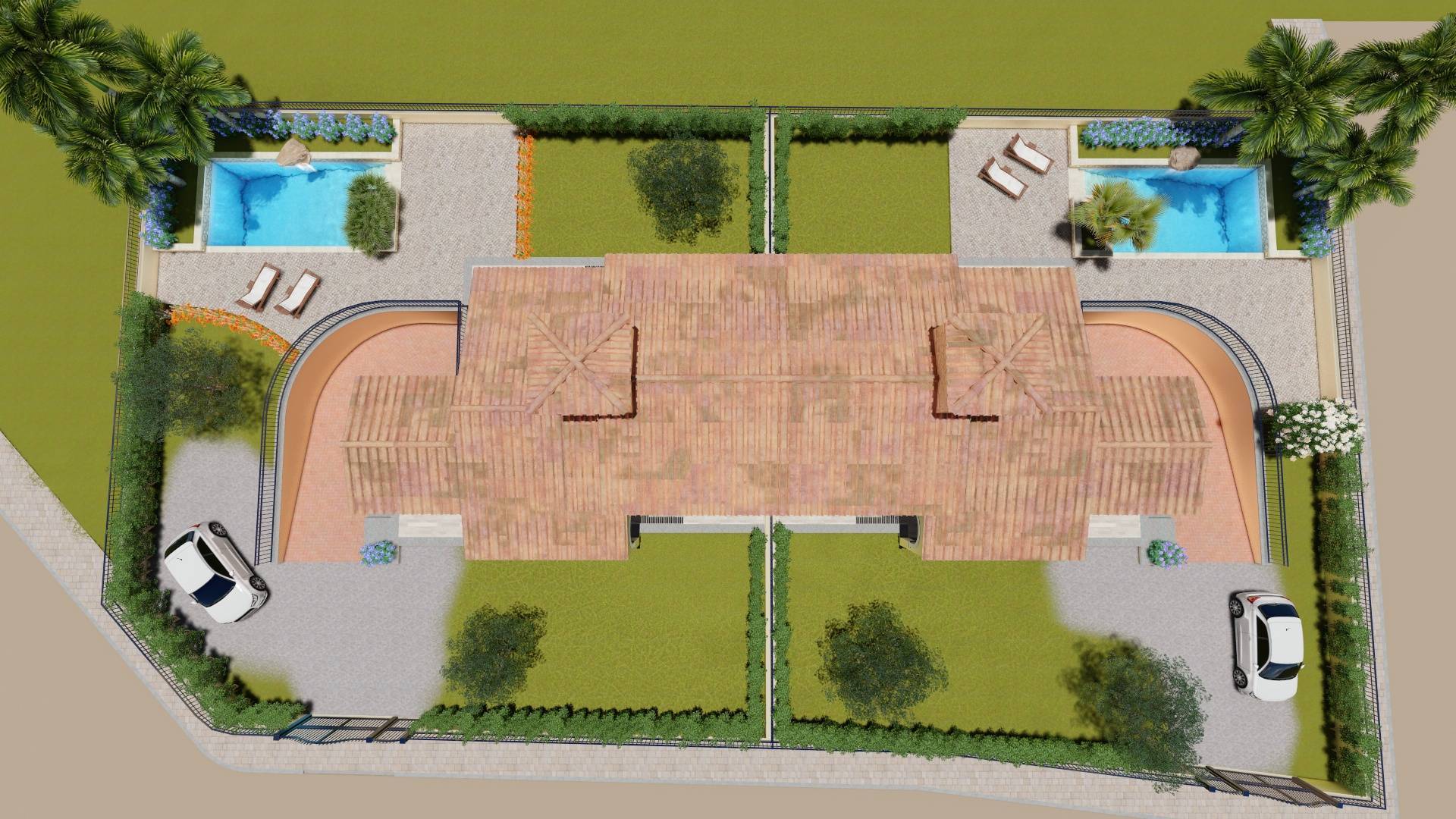 Nel seguente lotto, è possibile realizzare un'abitazione bifamiliare di circa 105 mq, su due livelli e con giardino su tre lati.