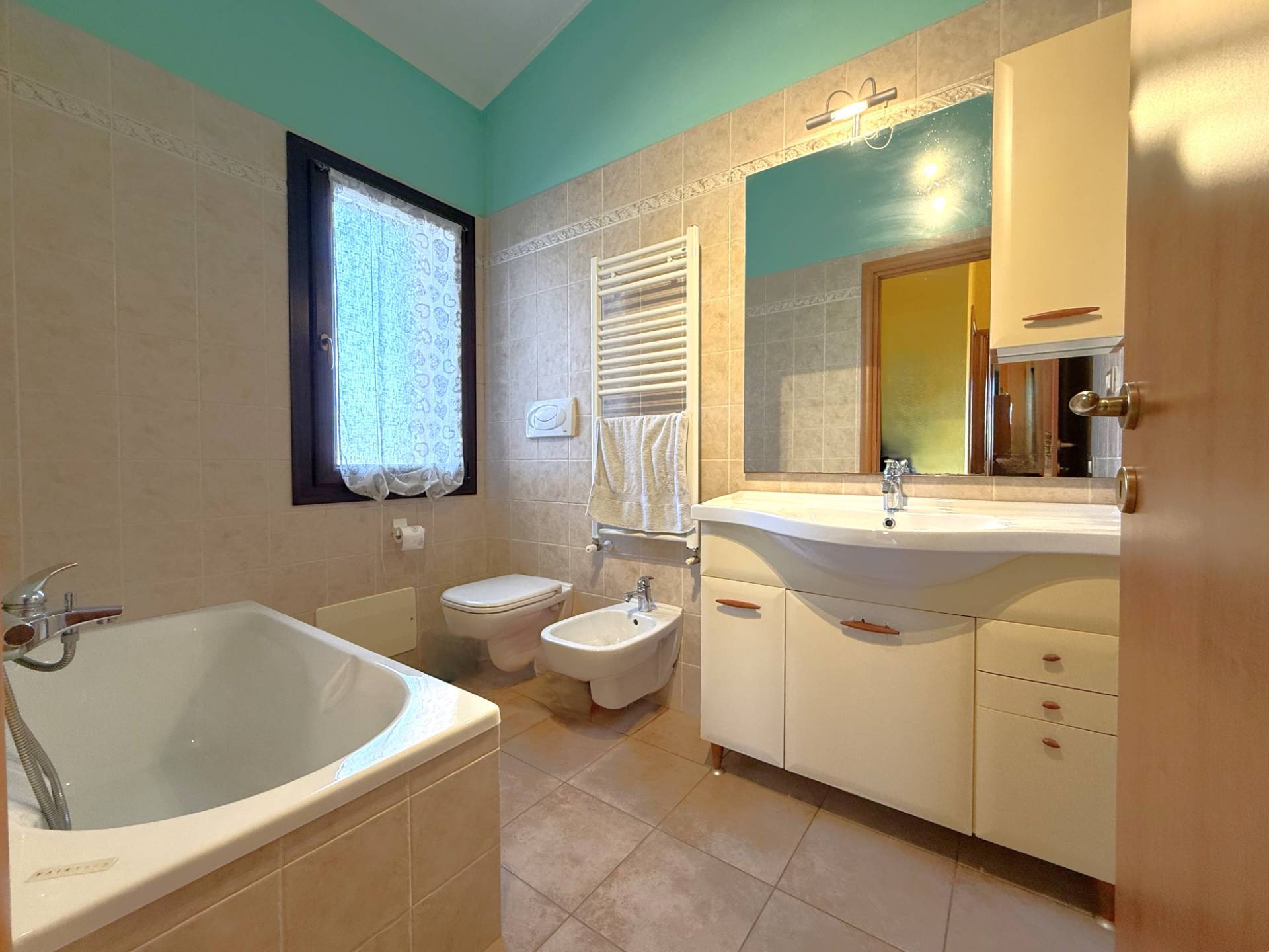Al piano terra si trova la zona giorno composta da, soggiorno, cucina, camera da letto e bagno finestrato con doccia; al piano superiore si trovano un bagno finestrato con vasca, due camere da letto e una camera da letto matrimoniale con affaccio sul balcone.