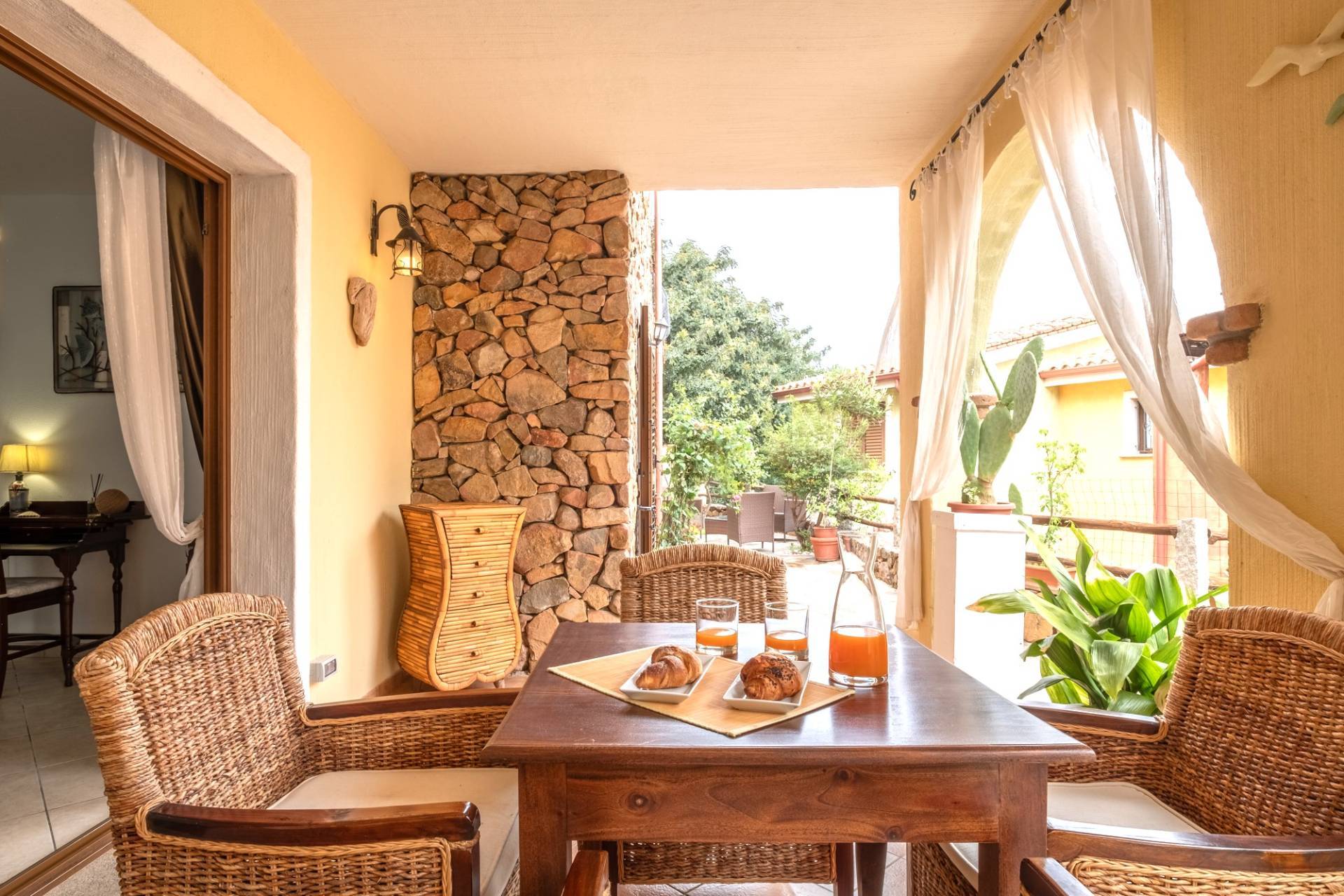 Ampia veranda con cortile privato che permette di godersi la tranquillità e il sole durante le colazioni e i pranzi.