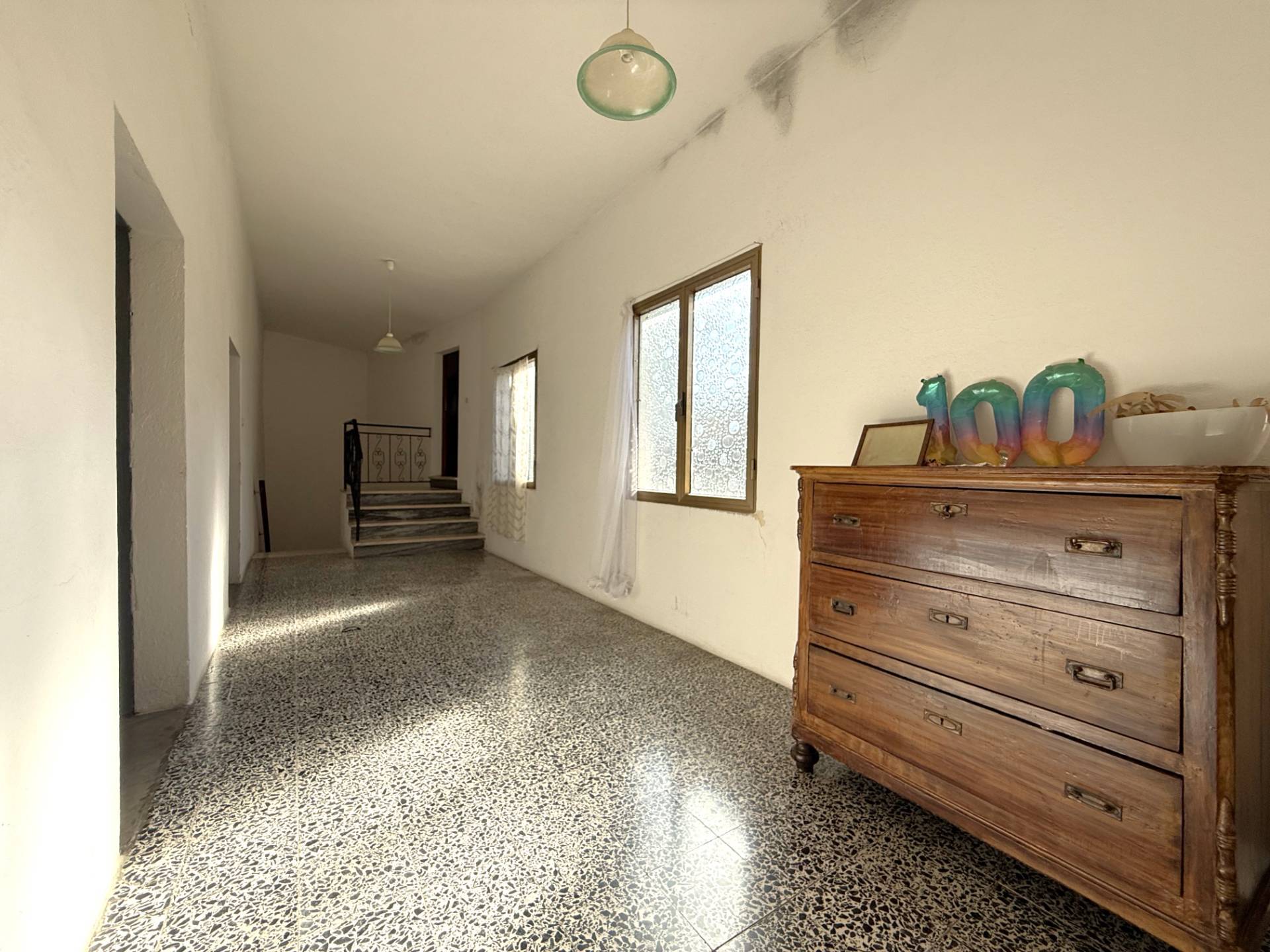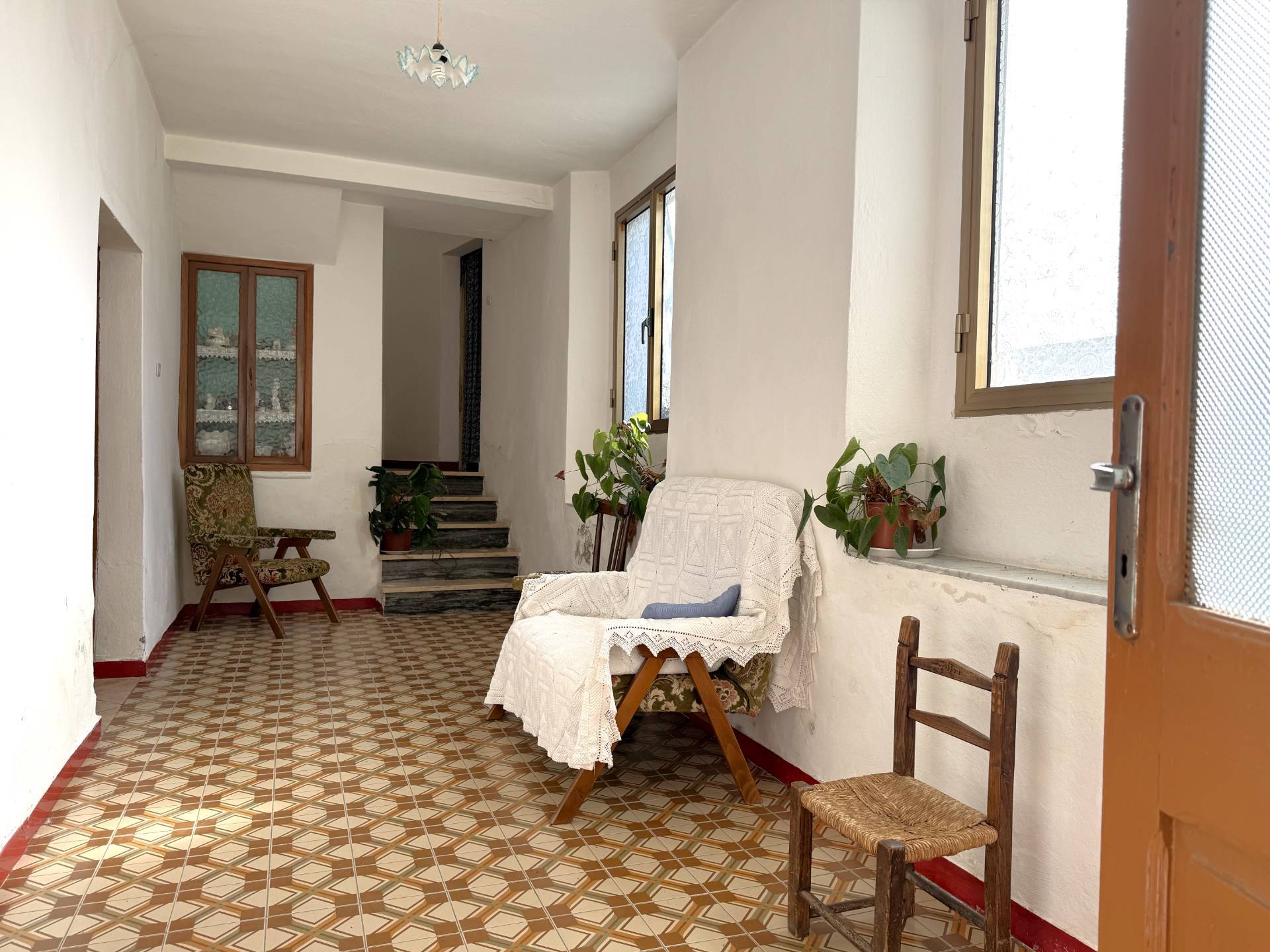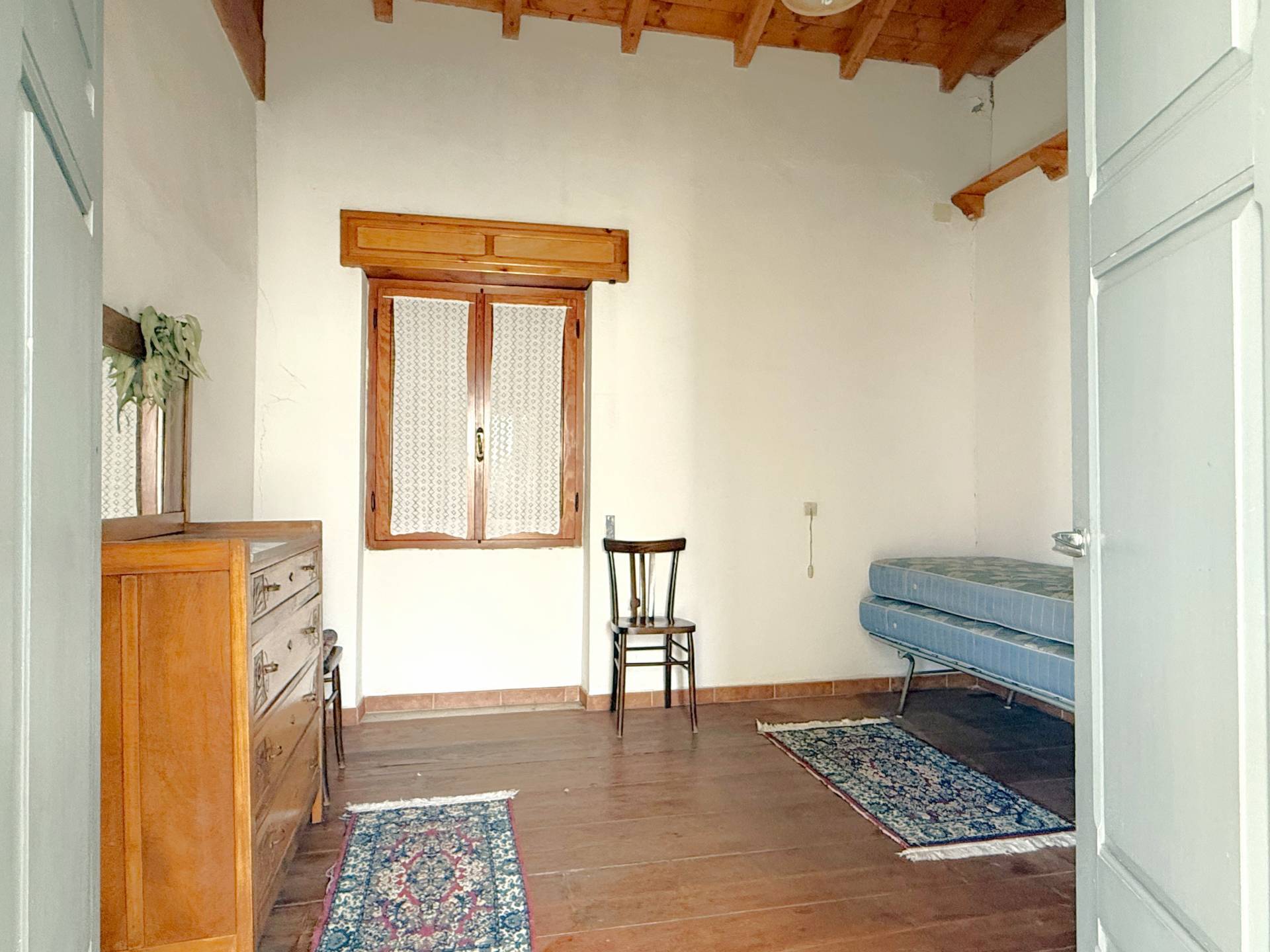 Una scala interna permette l'accesso al piano superiore in cui si trovano un ampio disimpegno, quattro camere da letto e un bagno.