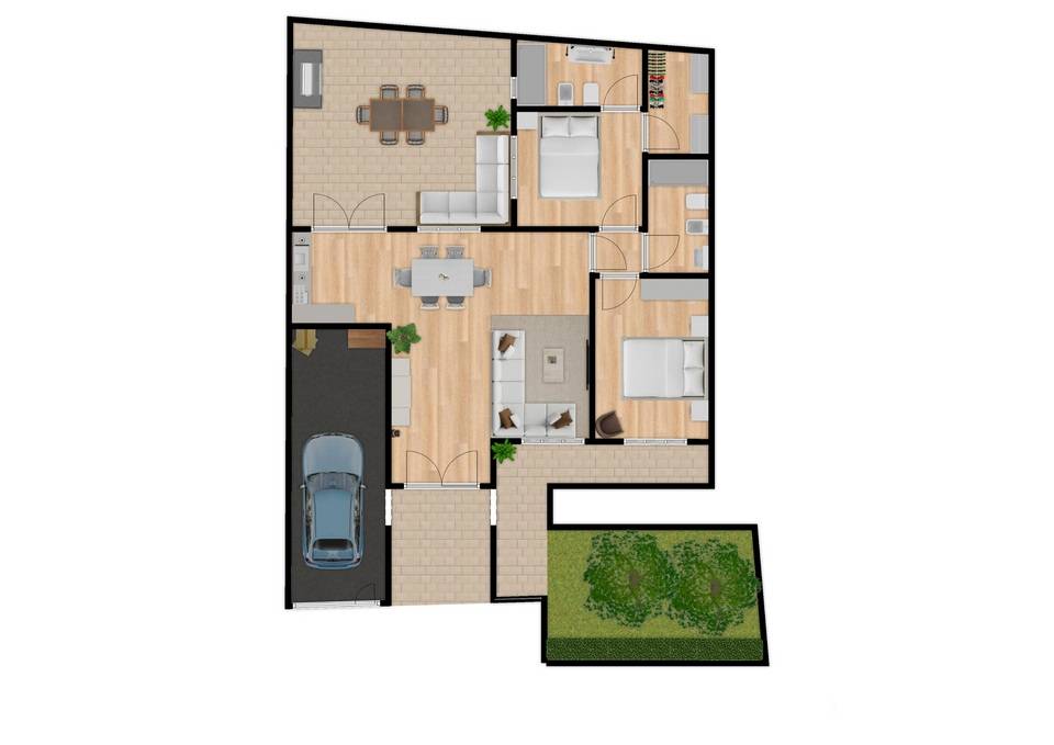 La generosa superficie dell'immobile offre la possibilità di realizzare un ampio pranzo-soggiorno, due camere da letto e due bagni.
