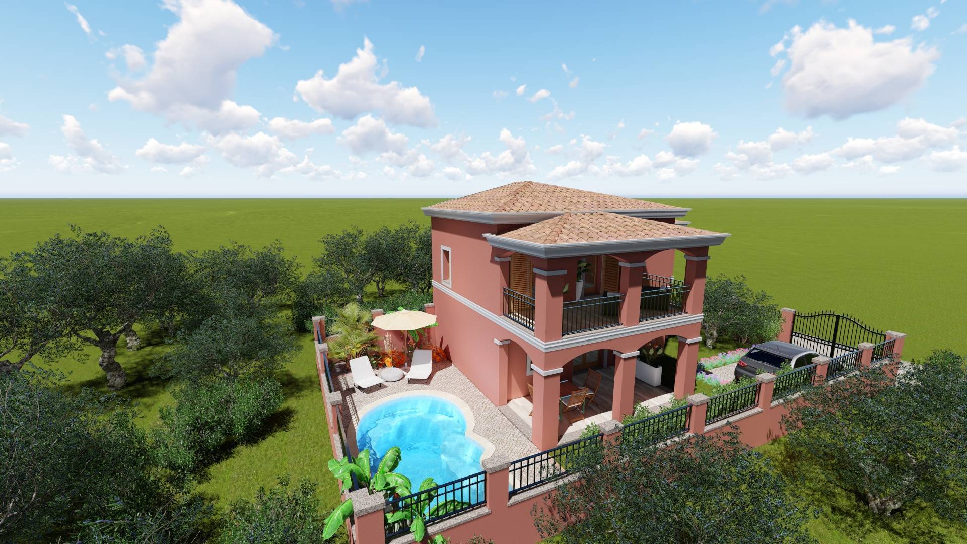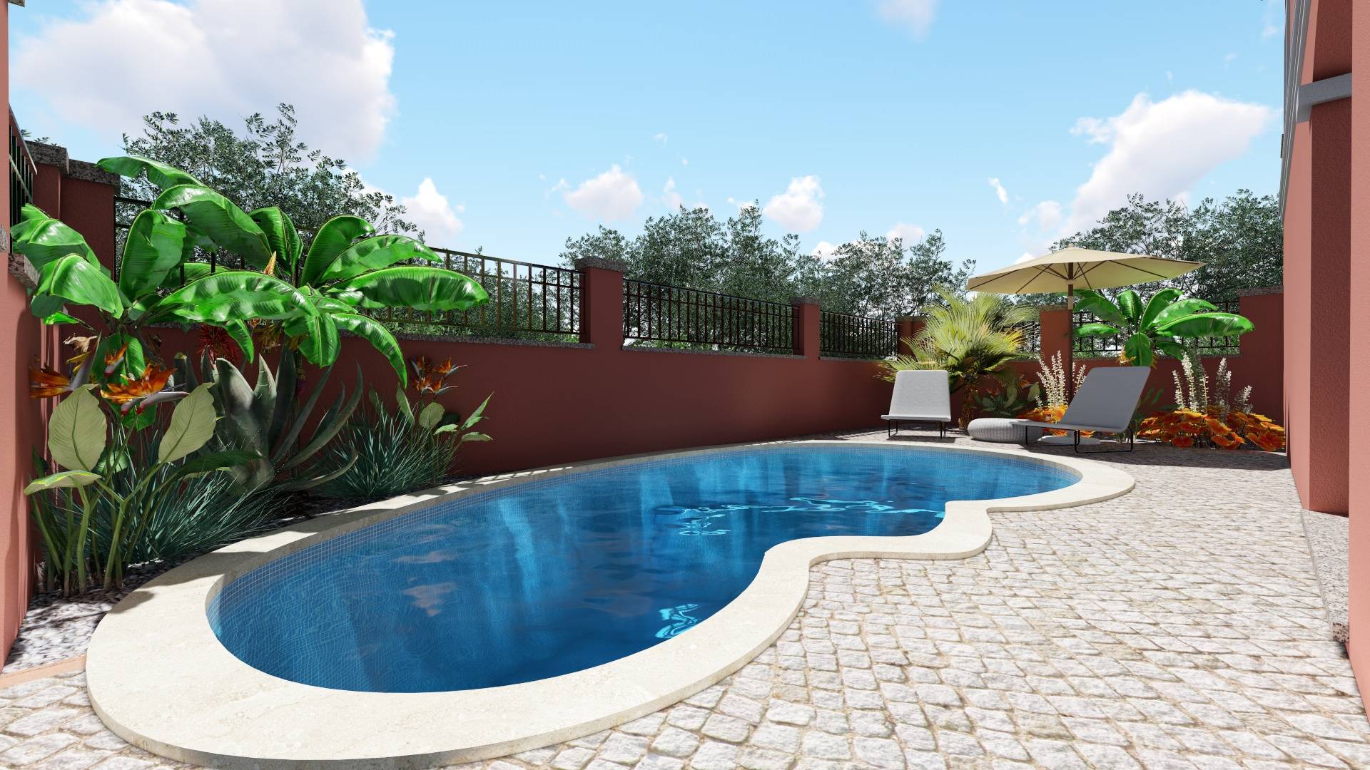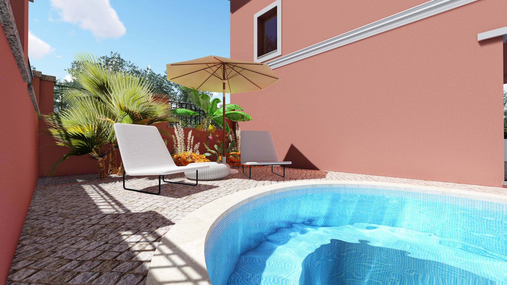 Il cortile di 130 mq includerà anche una piscina di circa 20 mq e un'area parcheggio all'ingresso, perfetta per accogliere amici o familiari.