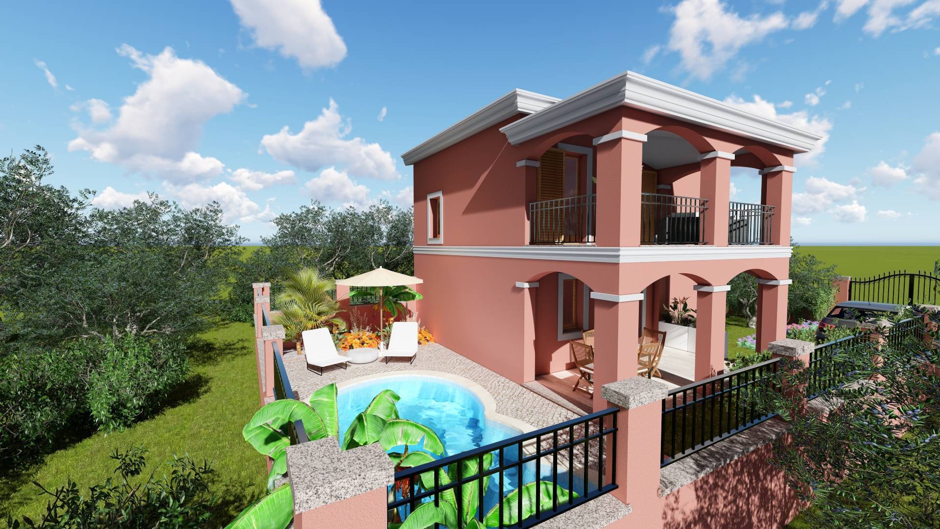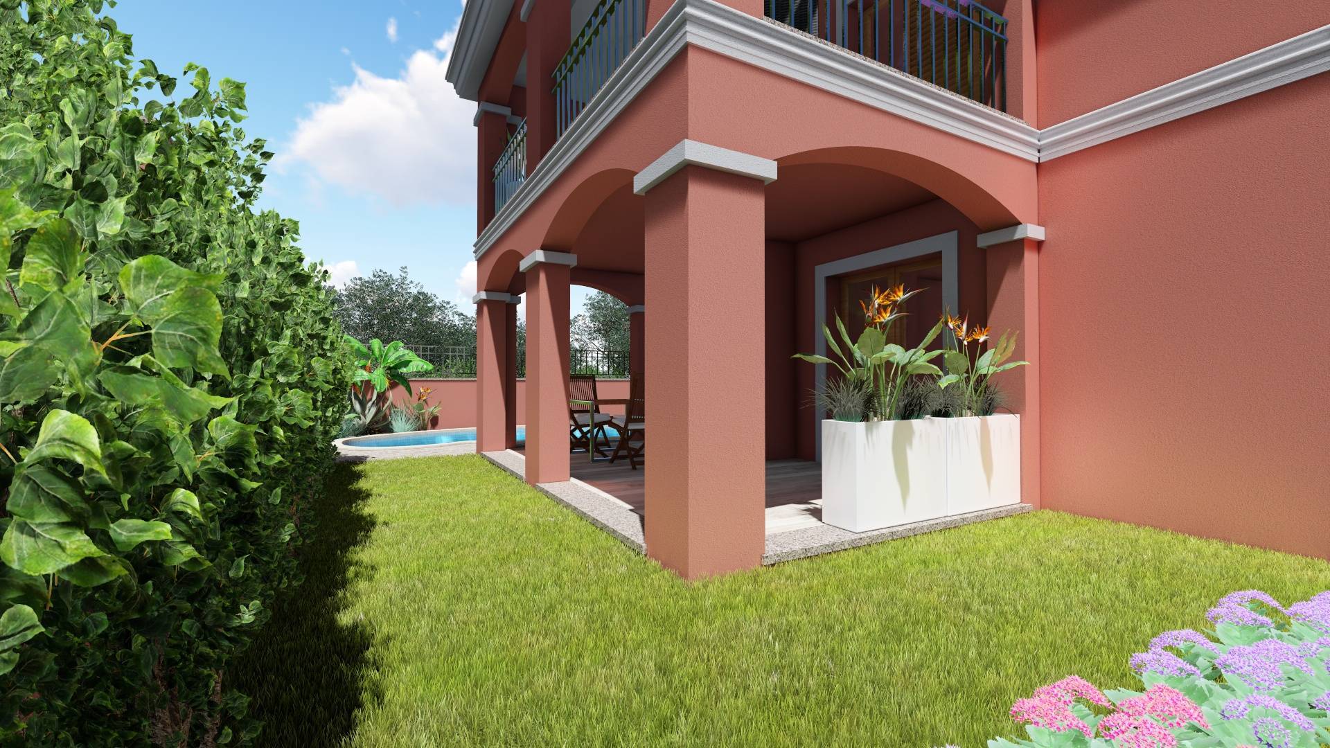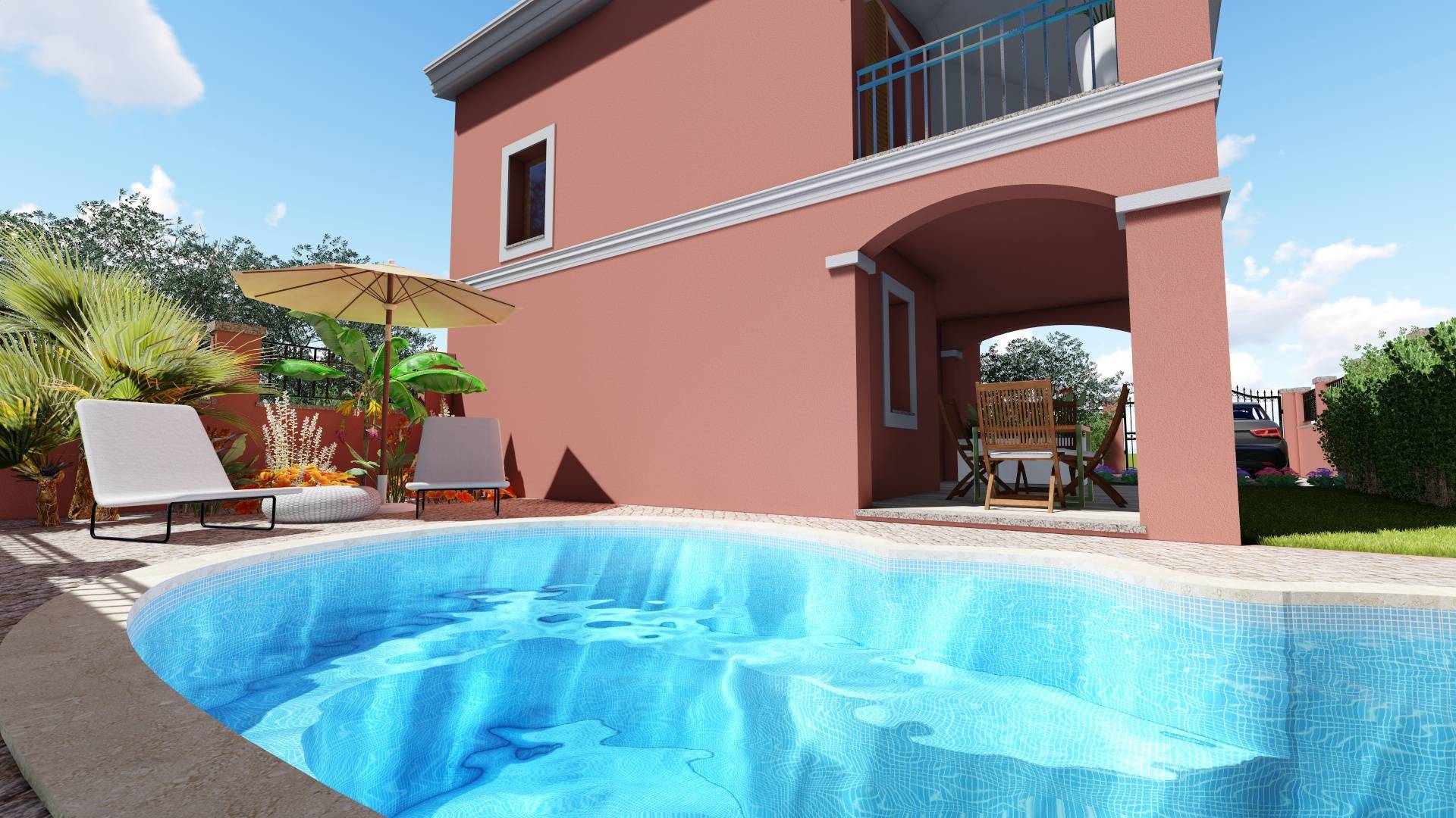 Il cortile di 130 mq includerà anche una piscina di circa 20 mq e un'area parcheggio all'ingresso, perfetta per accogliere amici o familiari.