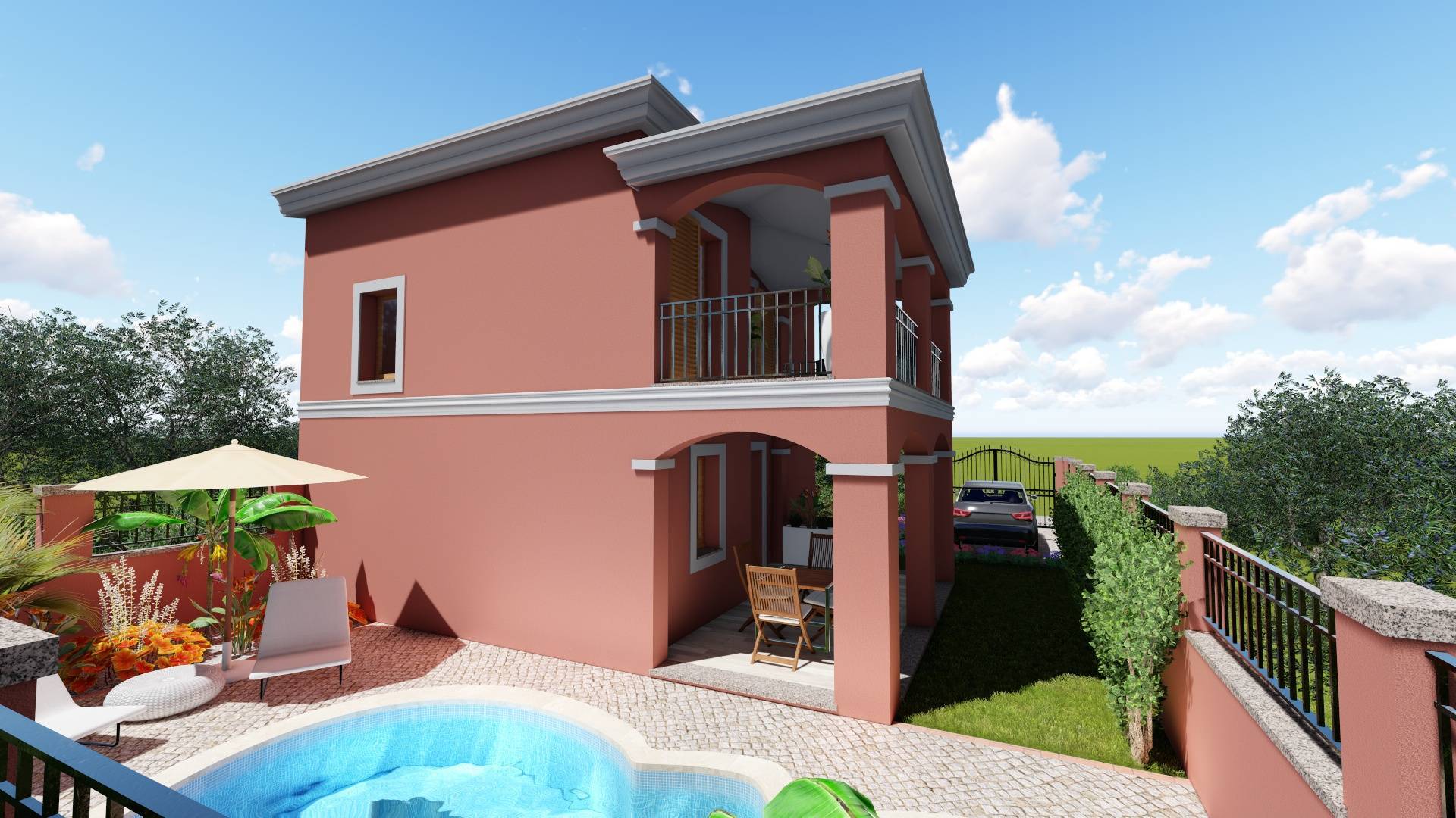 CASTIADAS - All'interno della graziosa e tranquilla borgata di Olia Speciosa, proponiamo una villetta bifamiliare su due livelli di nuova costruzione.
