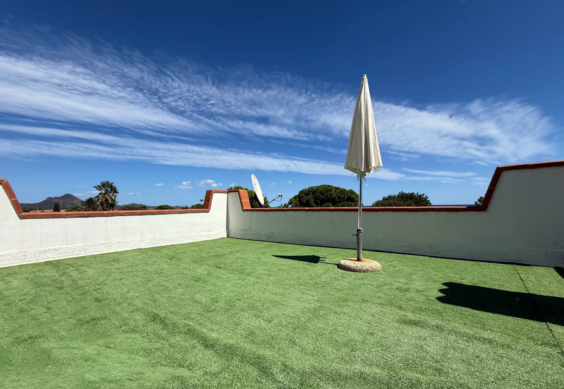 Tramite una scala esterna arriviamo alla terrazza panoramica sovrastante, da cui si gode una splendida vista sul mare e sul paesaggio circostante.