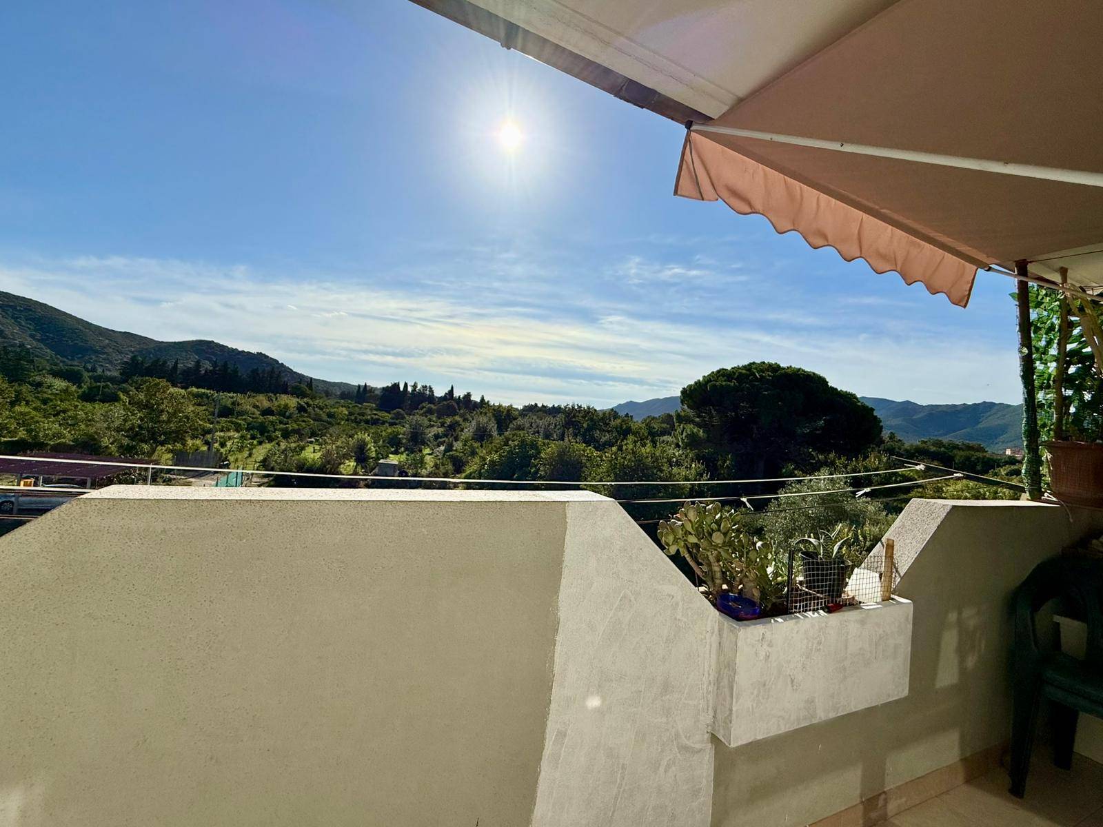 Percorrendo una comoda scala si accede all'appartamento, composto internamente da soggiorno, un angolo cottura a vista e una balconata esposta ad Est.