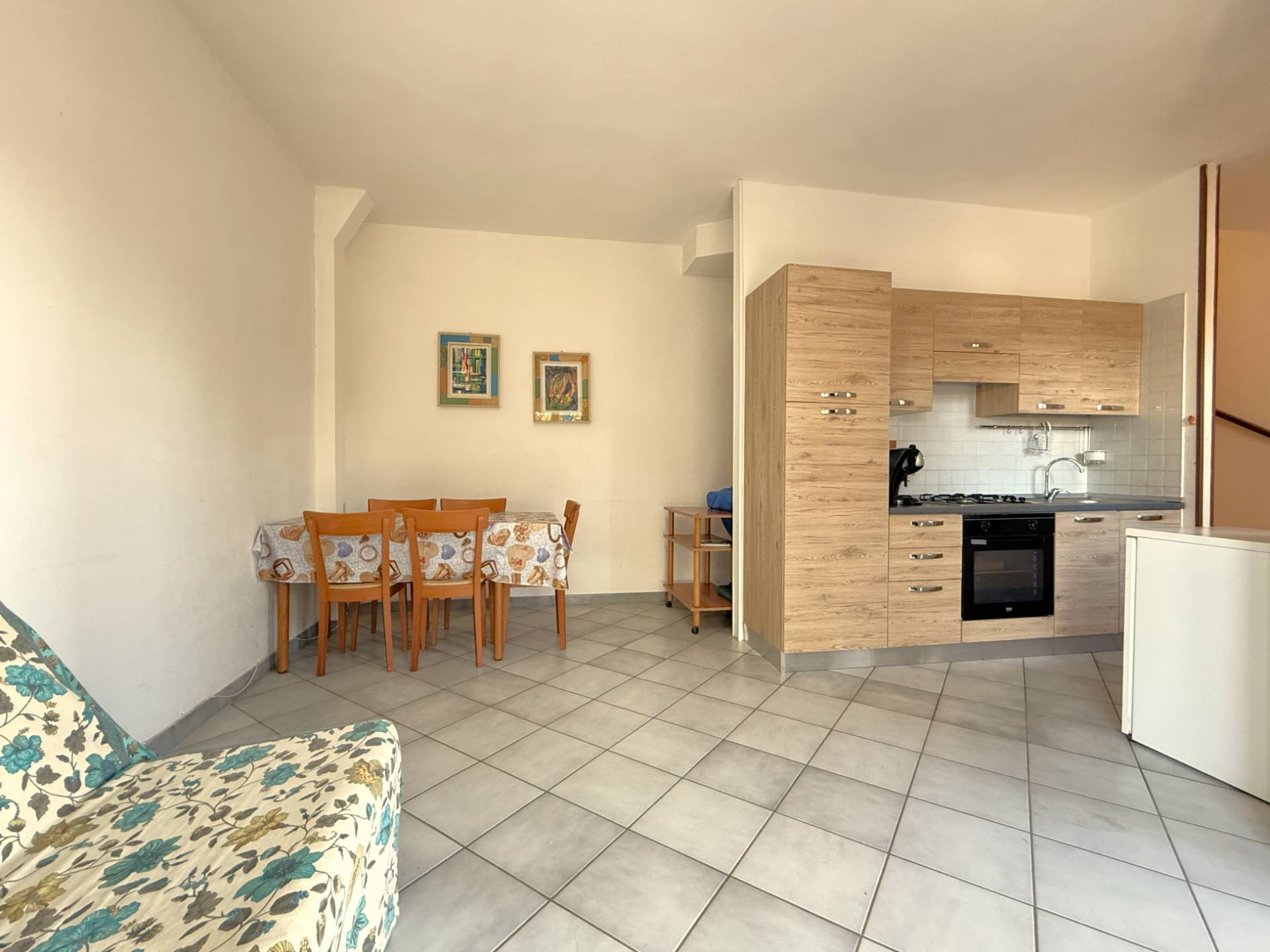 - Il piano terra, accessibile attraverso un terrazzino, dedicato alla zona pranzo soggiorno con angolo cottura e ripostiglio;