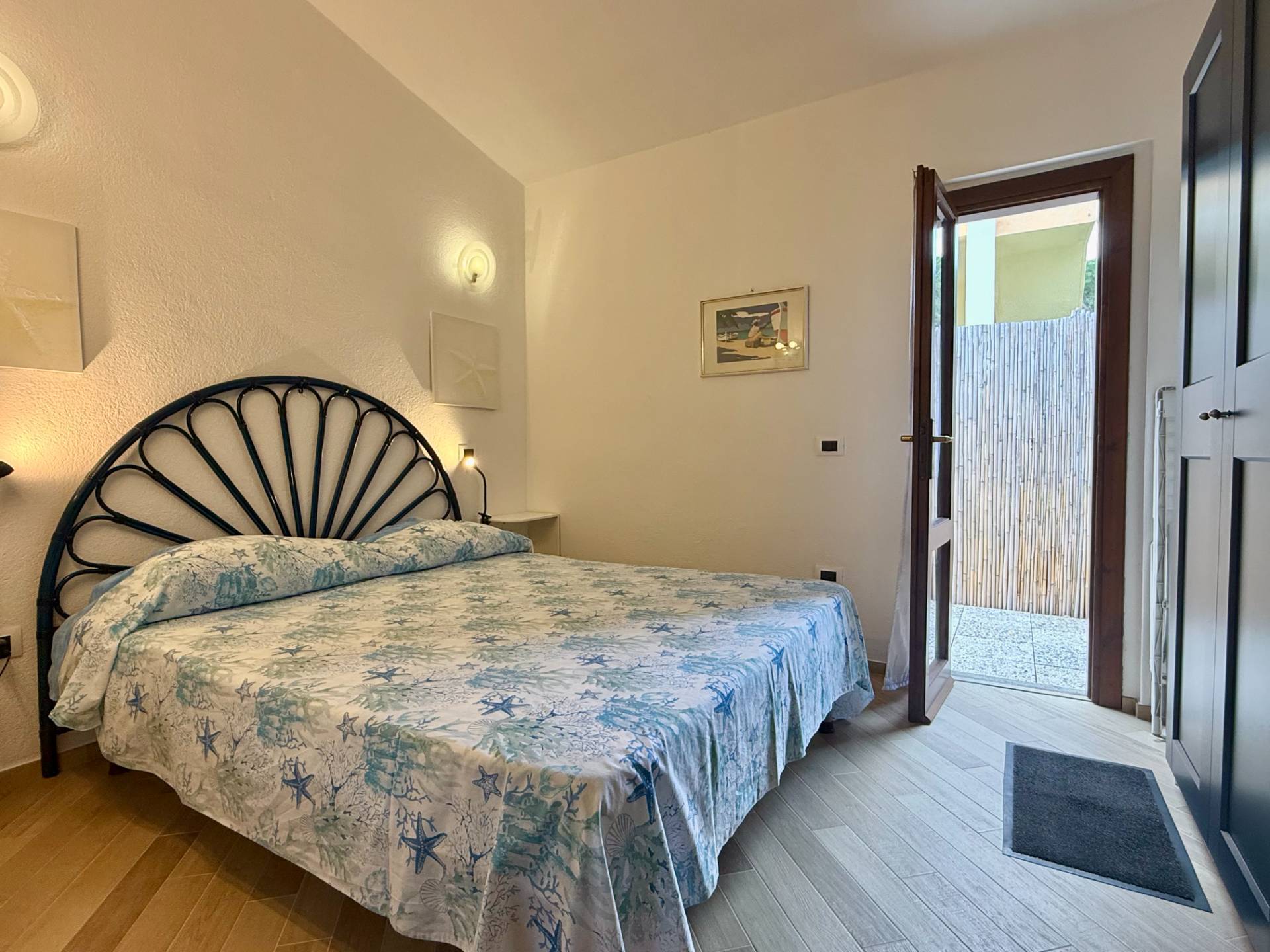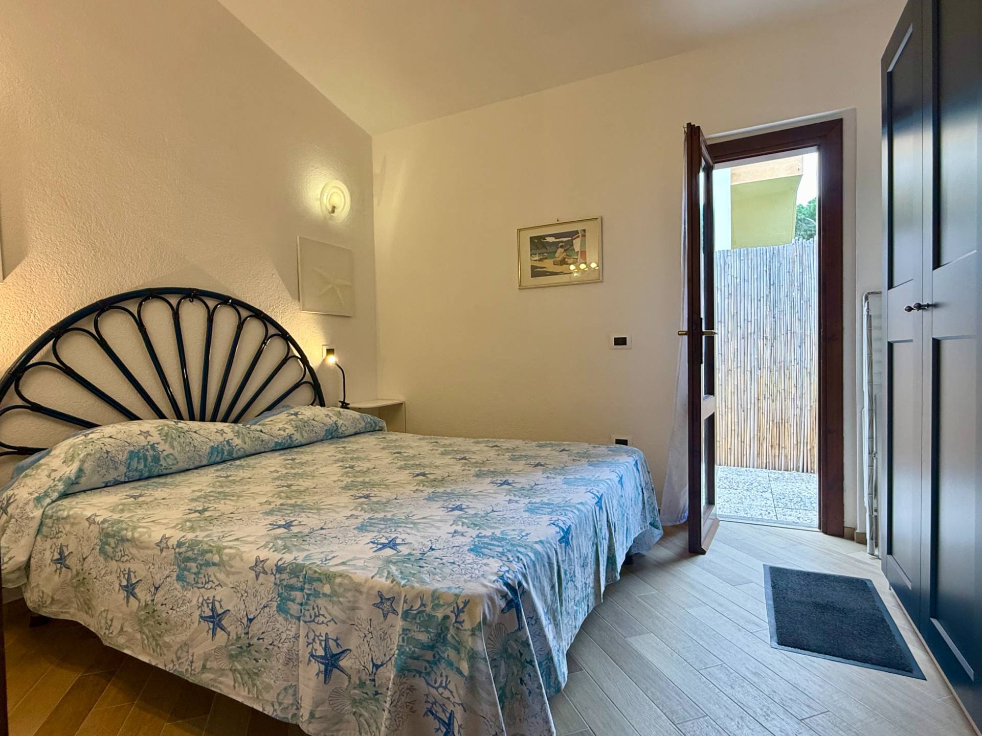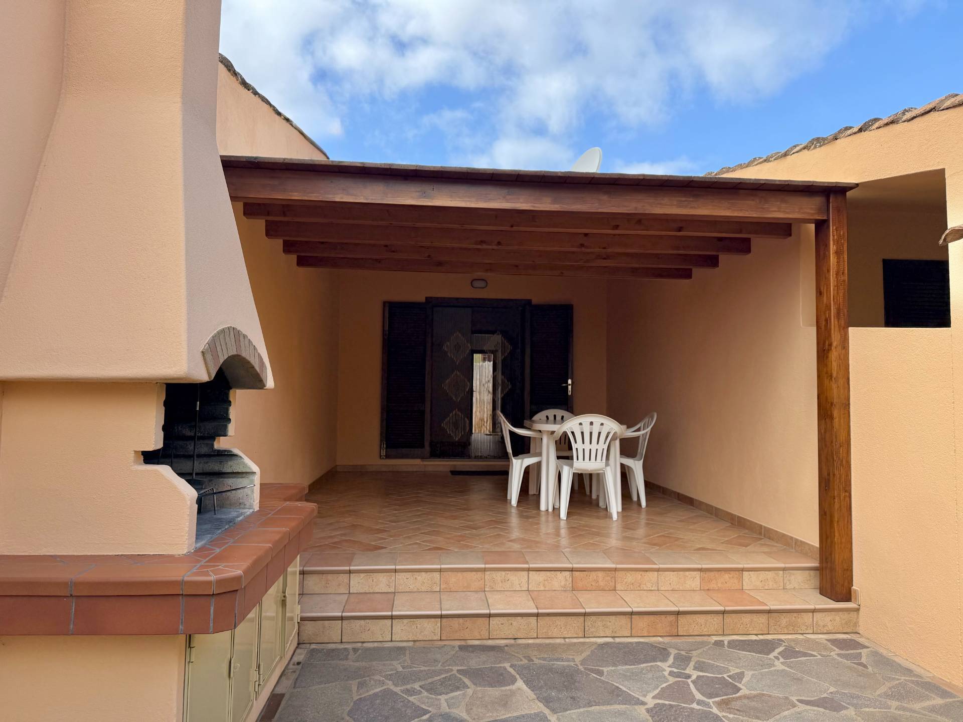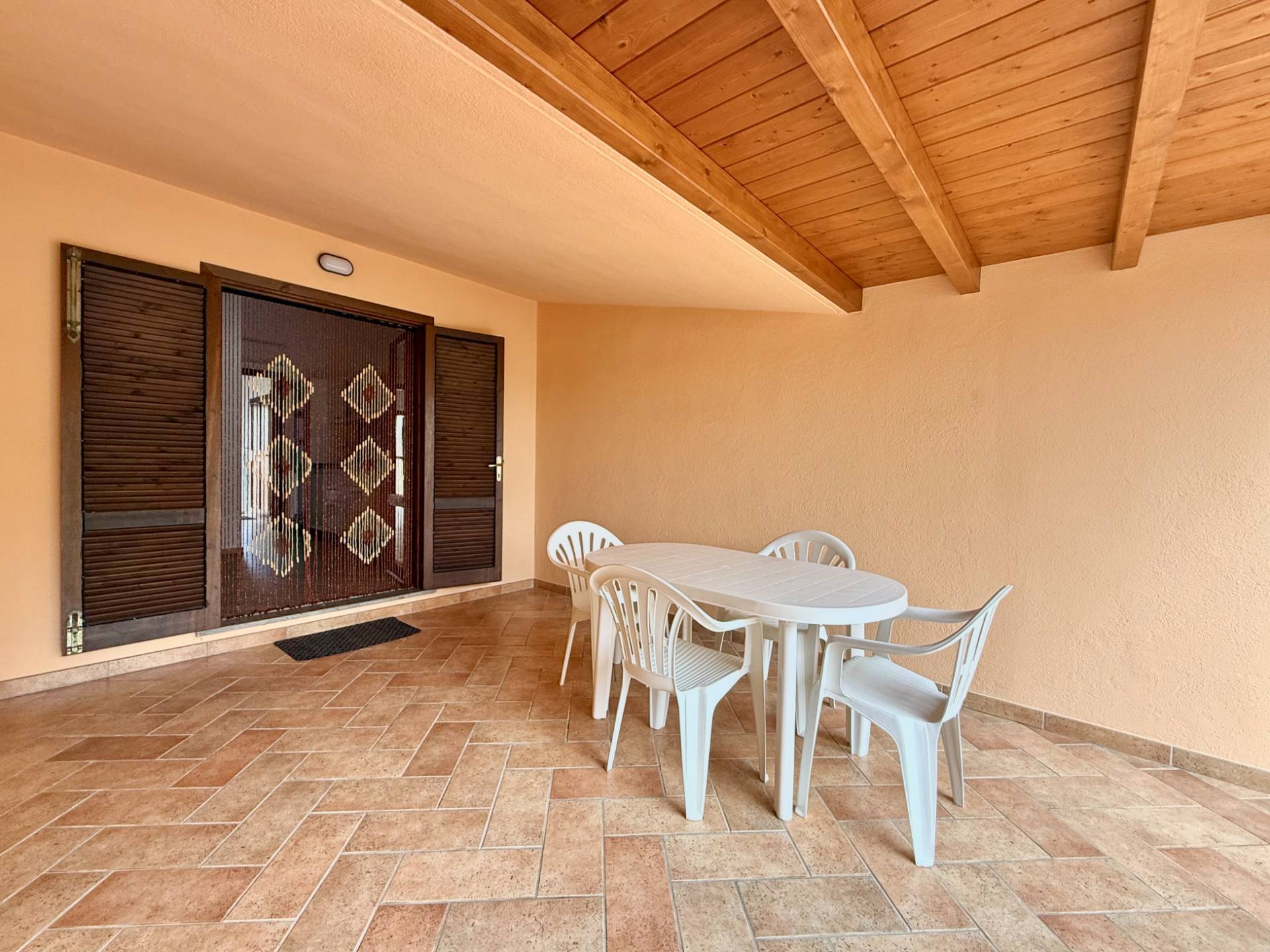 La veranda coperta permette di accedere alla villa, composta internamente da una zona giorno con angolo cottura a vista, disimpegno, bagno e camera da letto matrimoniale. Da quest'ultimo ambiente è possibile raggiungere la corte retrostante, piastrellata e dotata di doccia esterna e zona lavanderia.