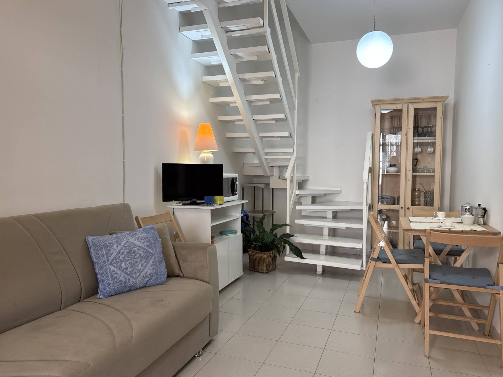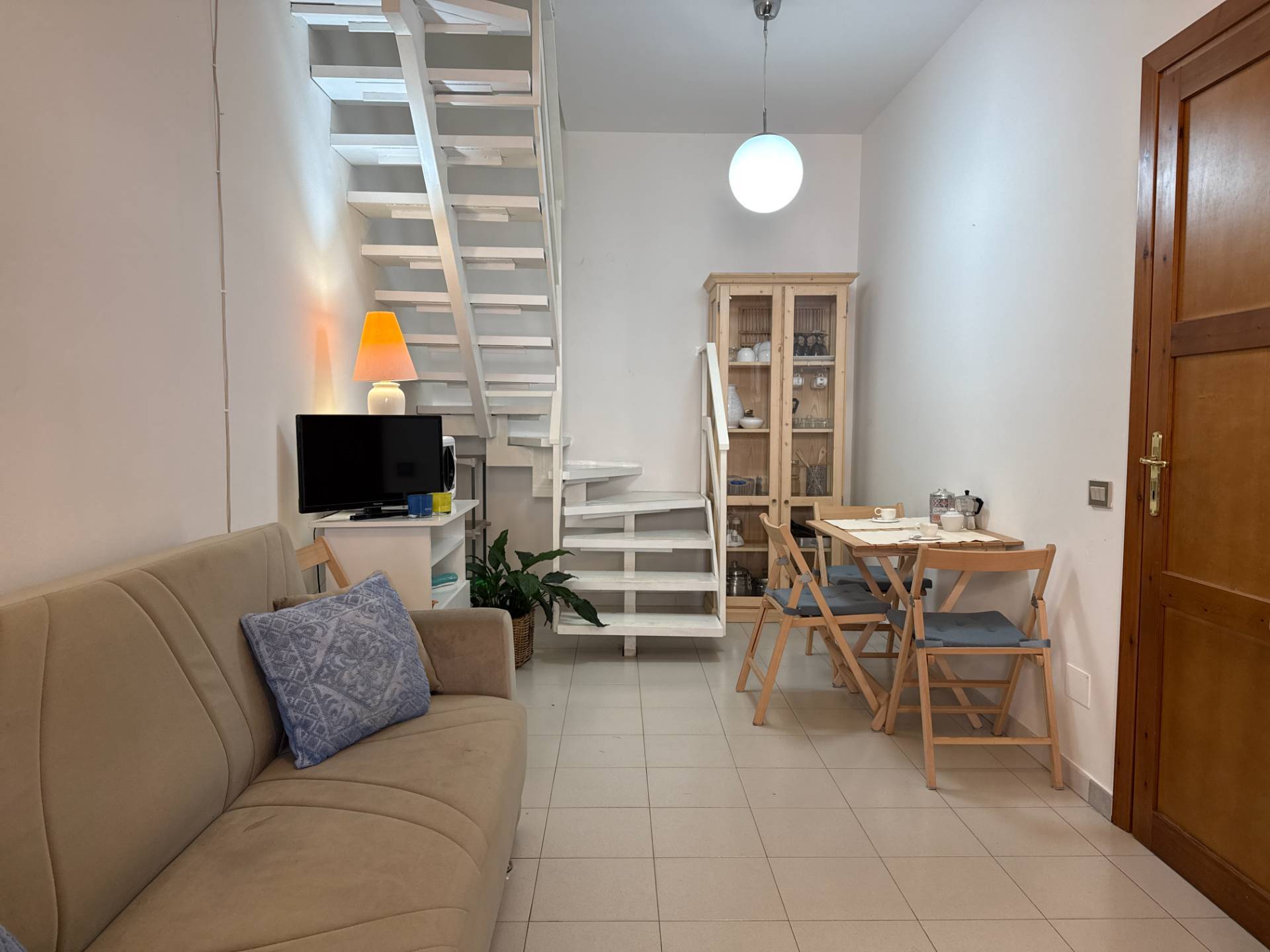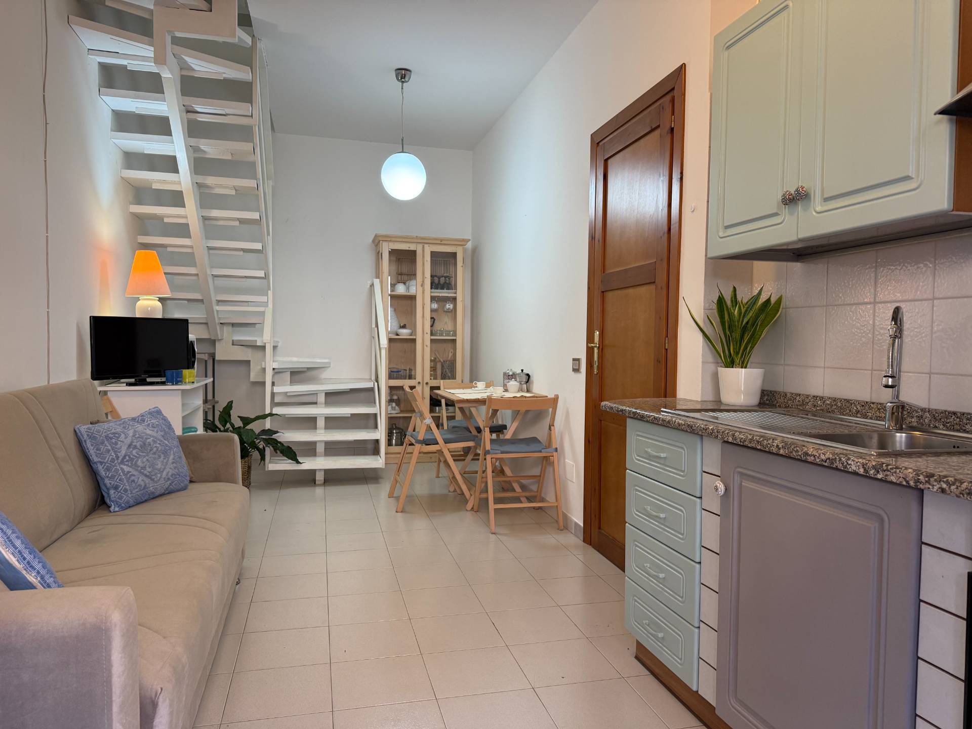 Al piano terra troviamo una luminosa zona giorno open space, dove soggiorno e angolo cottura si integrano in un unico ambiente funzionale e ben distribuito; completa il livello un bagno con antibagno finestrato.
