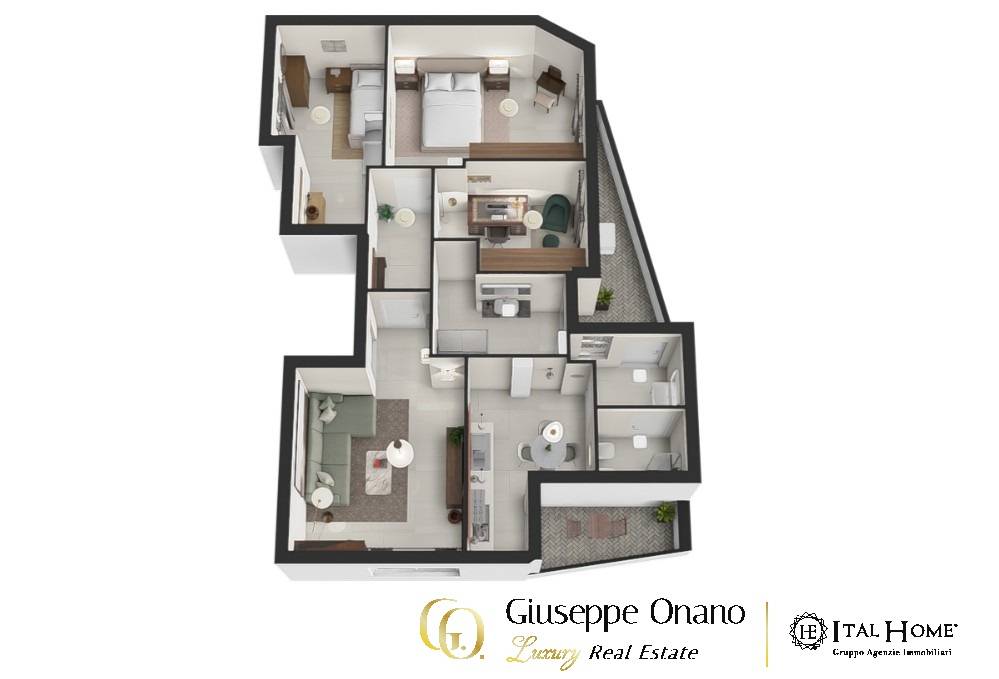 Zona Notte: Include due camere da letto matrimoniali e uno studio
